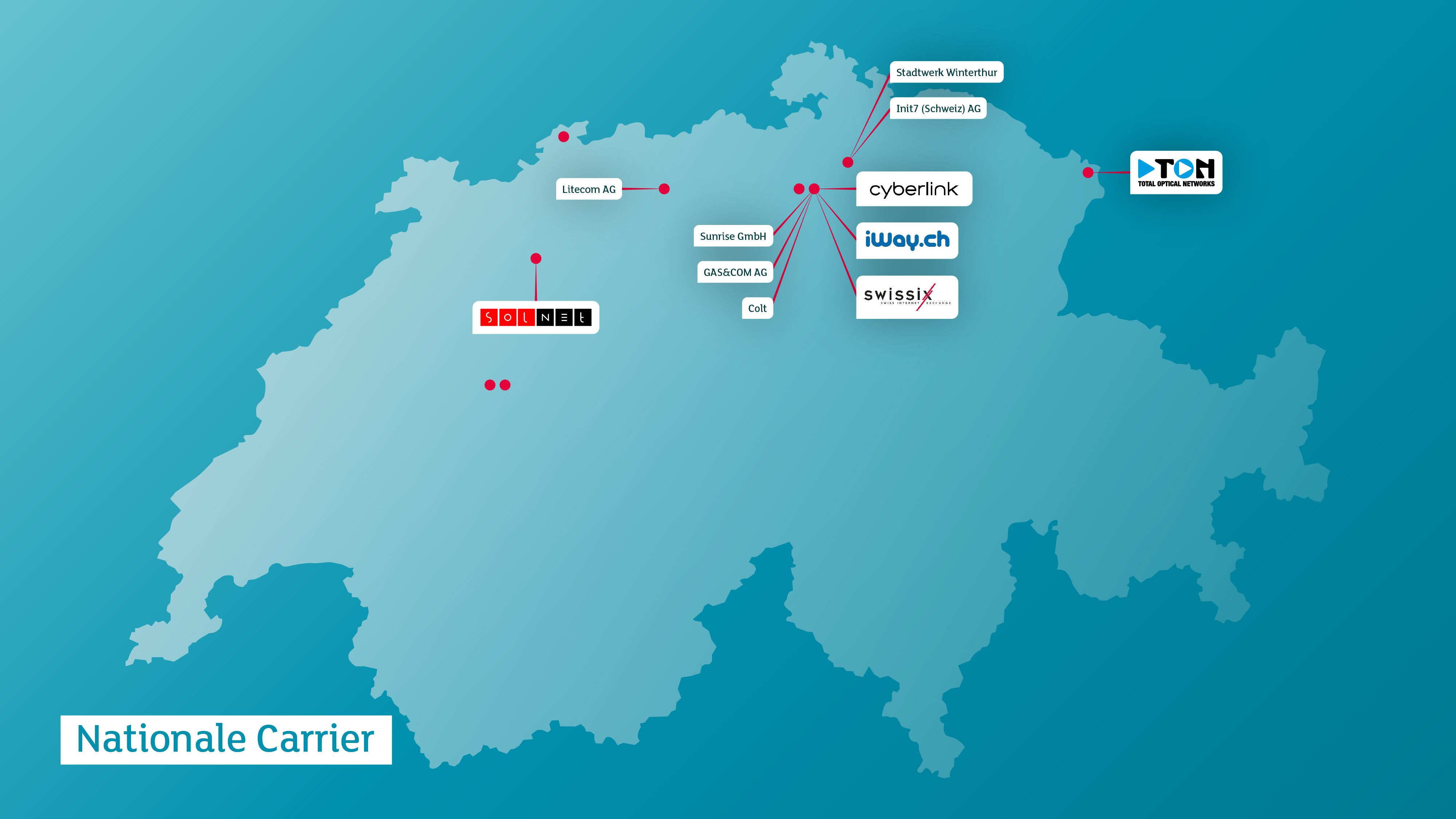 Erfahren Sie mehr über unser breites Spektrum an Vernetzungslösungen. Tragen auch Sie zu unserem anbieterneutralen Angebot mit Direktanbindungen zu Cloud Service Providern, SwissIX usw. bei.