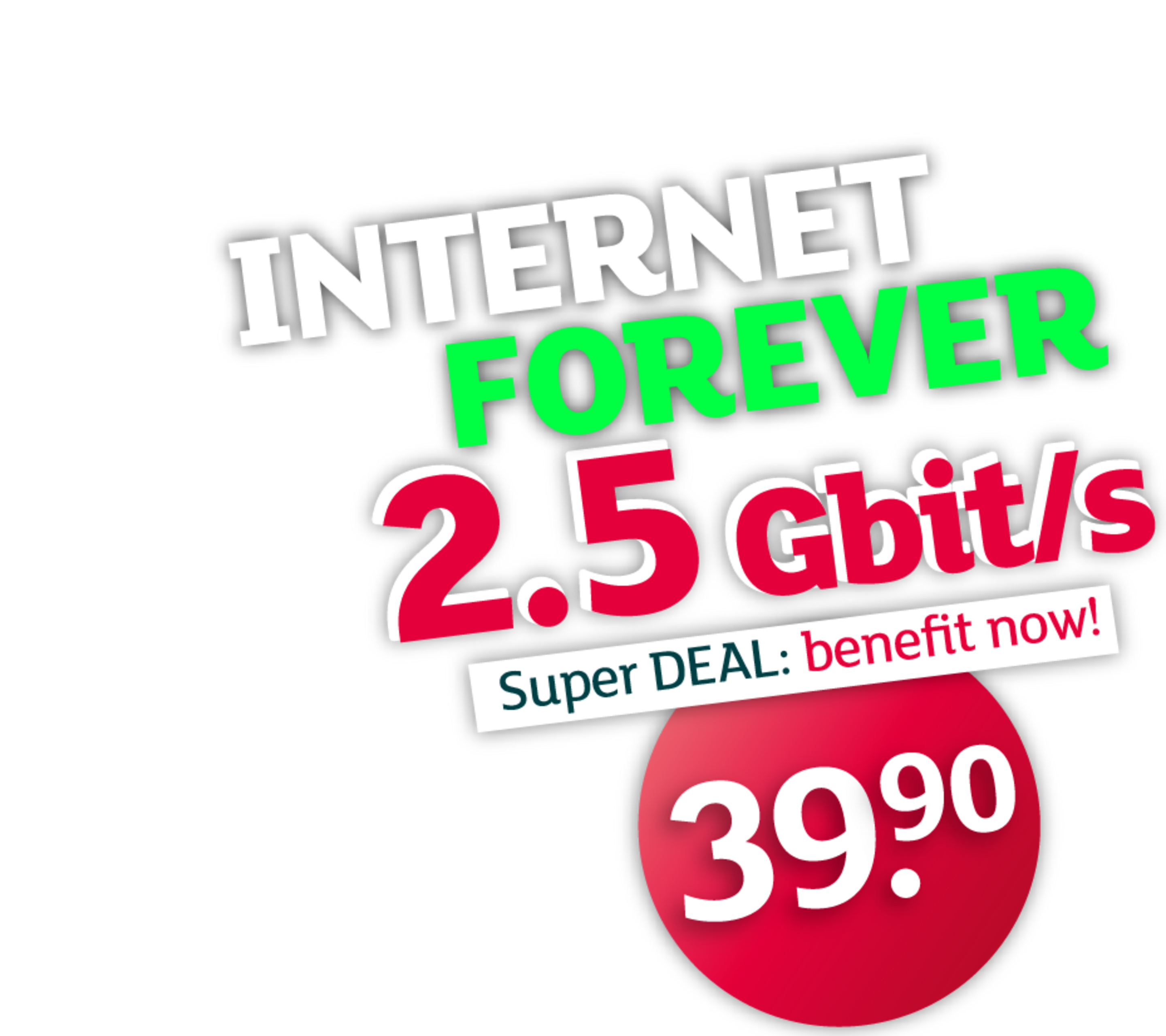 Take advantage of our exklusive offer: 2.5 Gbit/s for 39.90 – forever! IIs this internet offer available at your location? Check now: