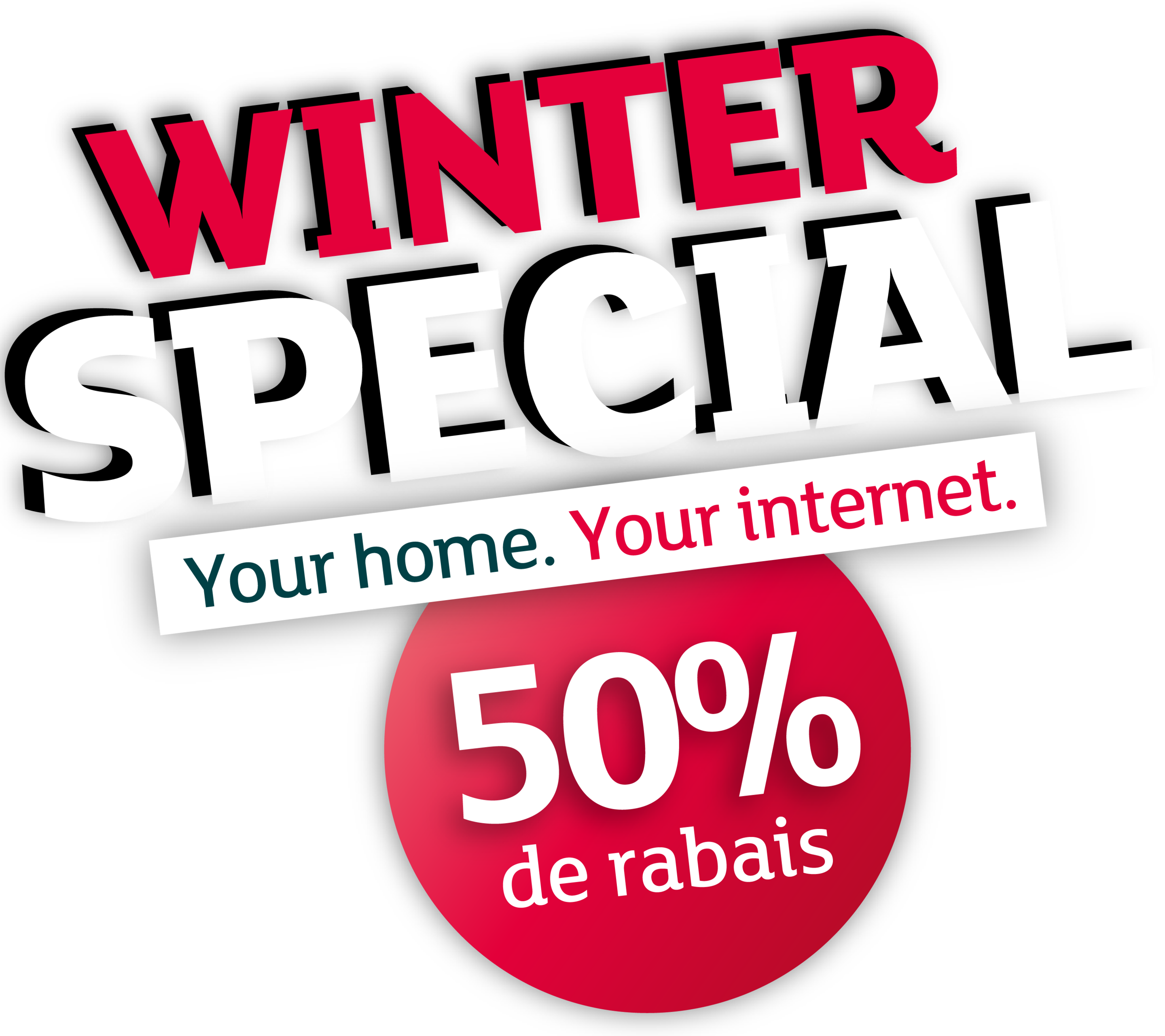 50 % de rabais : l'offre est valable jusqu'au 15.02.2026 pour toute nouvelle souscription à un abonnement Internet Home XS, S, M, L ou XXL. Pendant les 18 premiers mois, vous bénéficiez de l'abonnement au prix promotionnel. Ensuite, le prix normal s'applique. La durée minimale du contrat est de 24 mois.